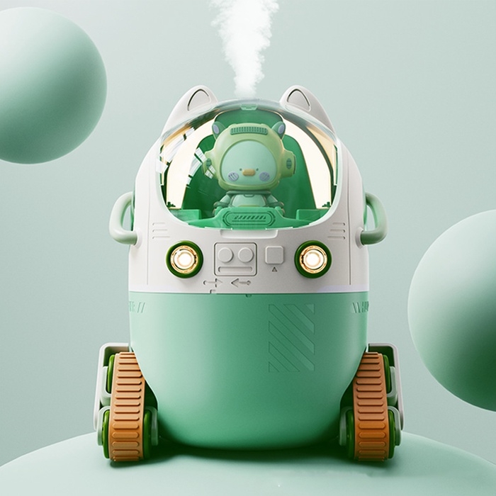 С помощью регулятора интенсивности испарения вы сможете настроить уровень влажности в комнате. А благодаря подсветке кабины и фар, «Луноход» станет настоящим украшением детской комнаты.