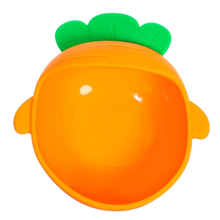 - Посуда выполнена в виде моркови. Необычная форма и яркие цвета привлекут внимание крохи.
