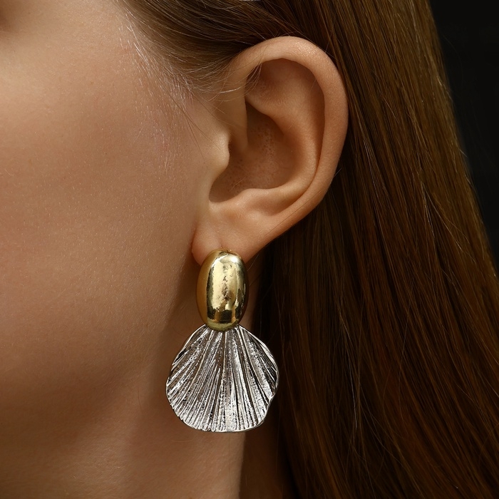 Серьги металл "Ракушка" юбка, цвет золото