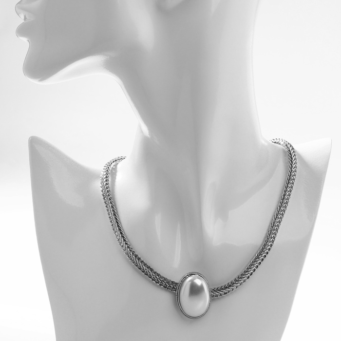 Колье "Жемчужина" овал, цвет белый в серебре, 40 см