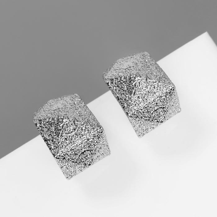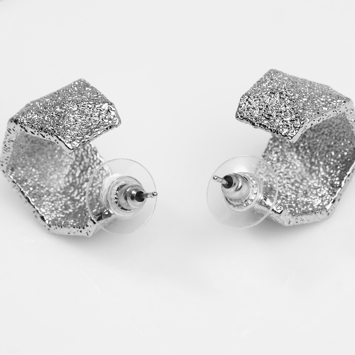 Серьги металл "Геометрия" объём, цвет серебро