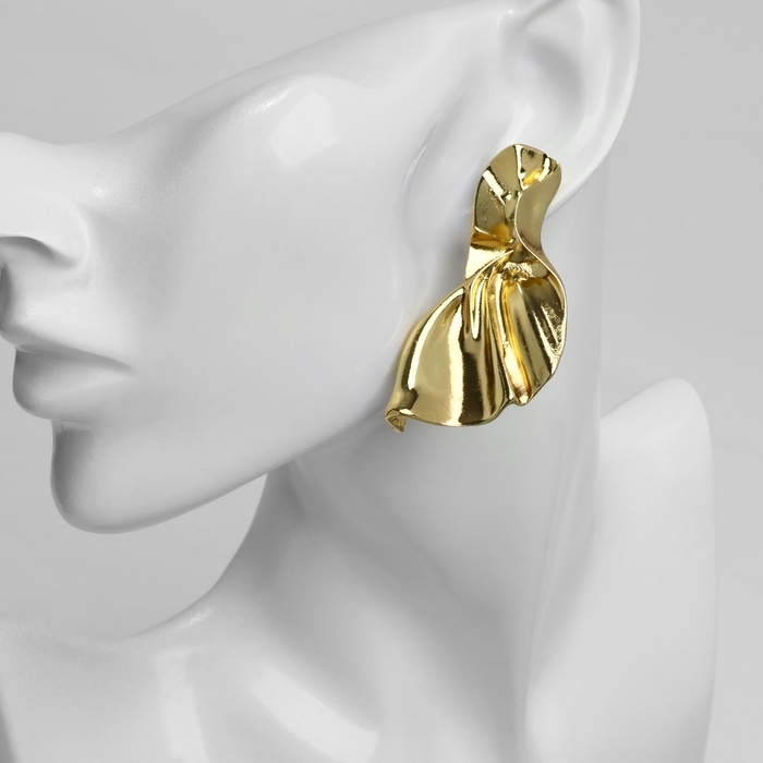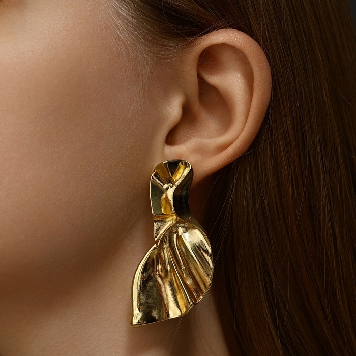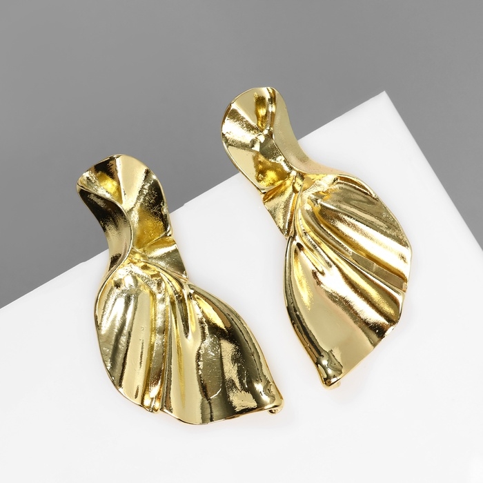 Серьги металл "Изгиб" волна крупная, цвет золото
