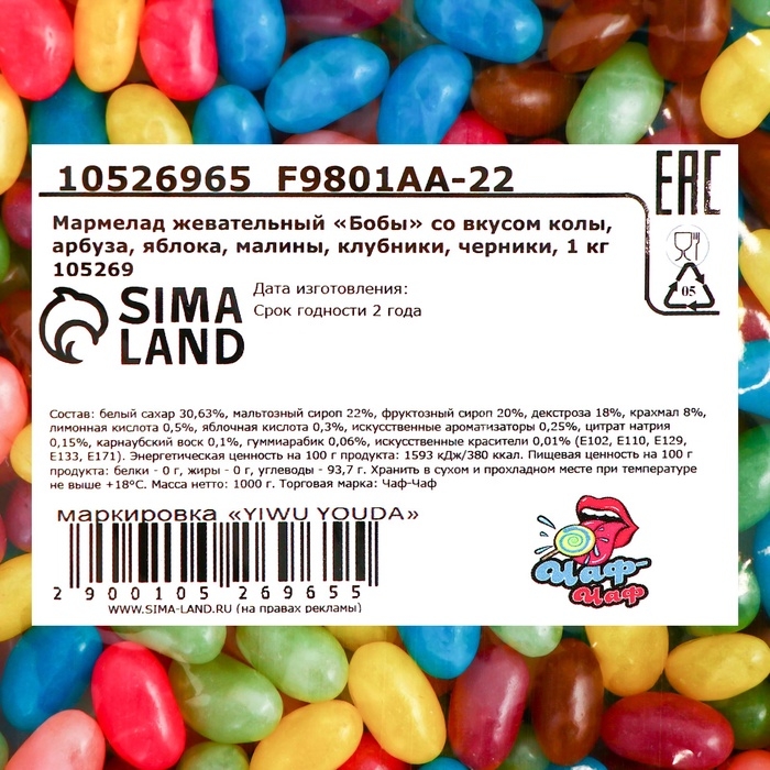Мармелад жевательный "Бобы" с фруктово-ягодным вкусом, 1 кг