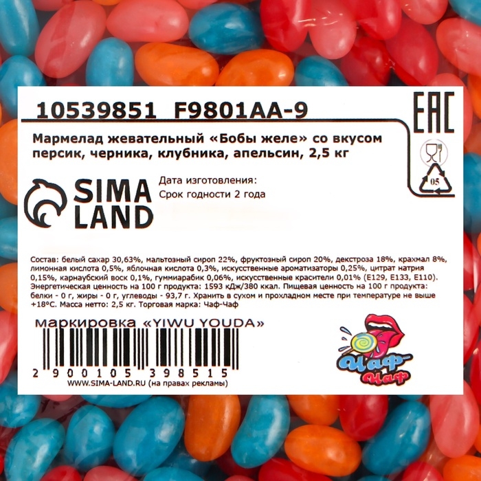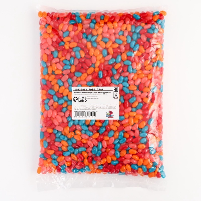 Мармелад жевательный "Бобы желе" со вкусом персик, черника, клубника, апельсин, 2,5 кг