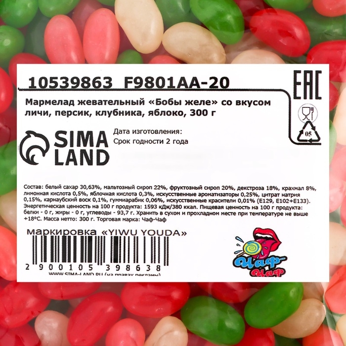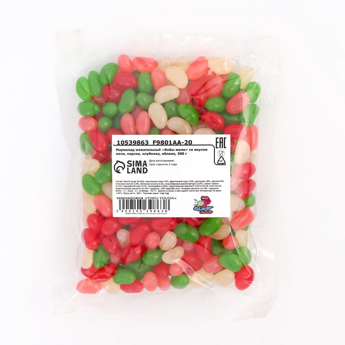 Мармелад жевательный "Бобы желе" со вкусом личи, персик, клубника, яблоко, 300 г