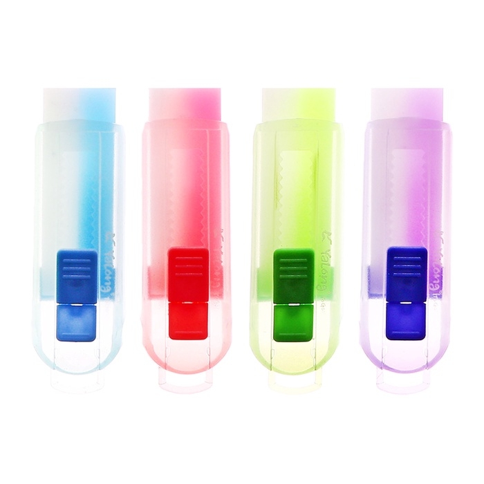 Ластик прямоугольный в цвет корпуса, в пластиковом выдвижном держателе МИКС