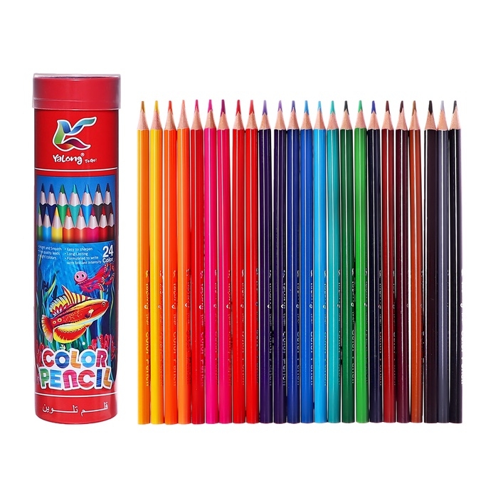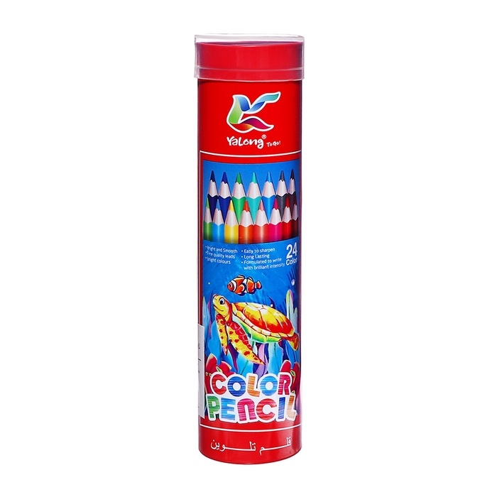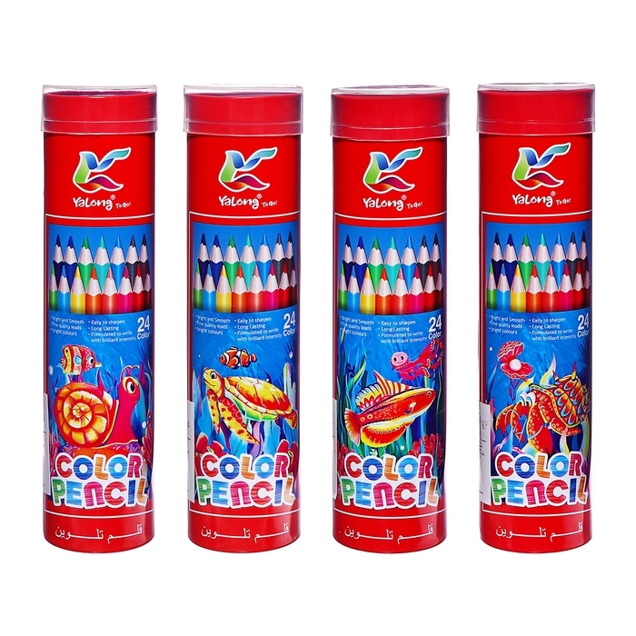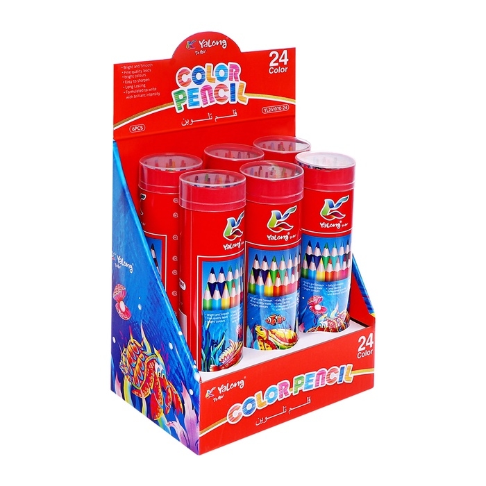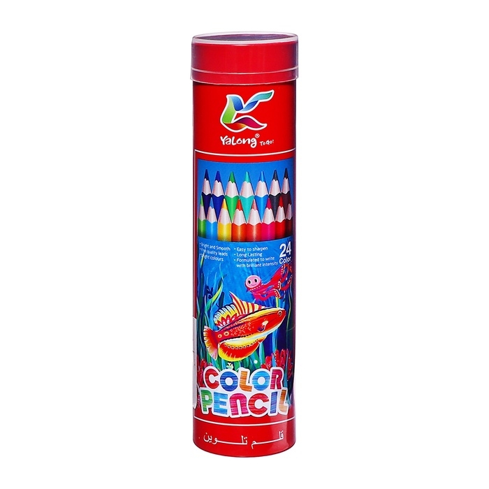 Карандаши 24 цвета, в металл тубусе, треугольные, деревянные, Морские обитатели,МИКС