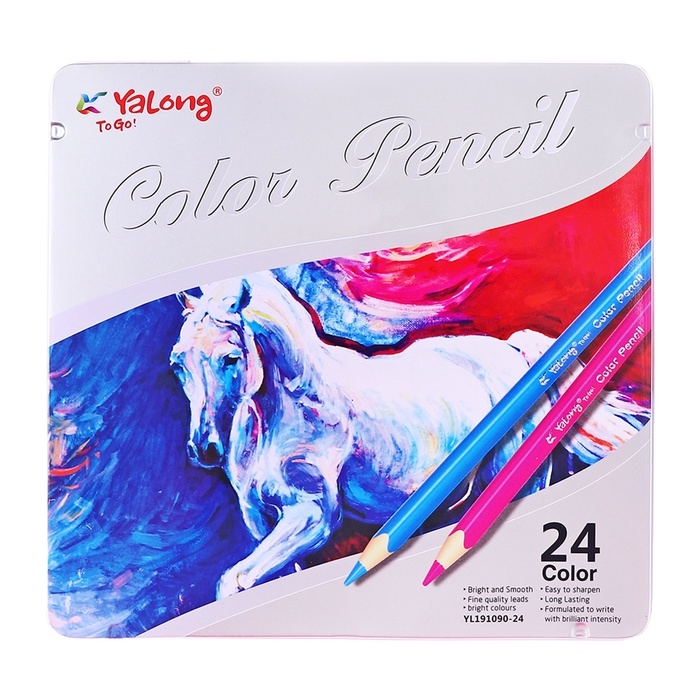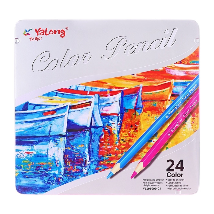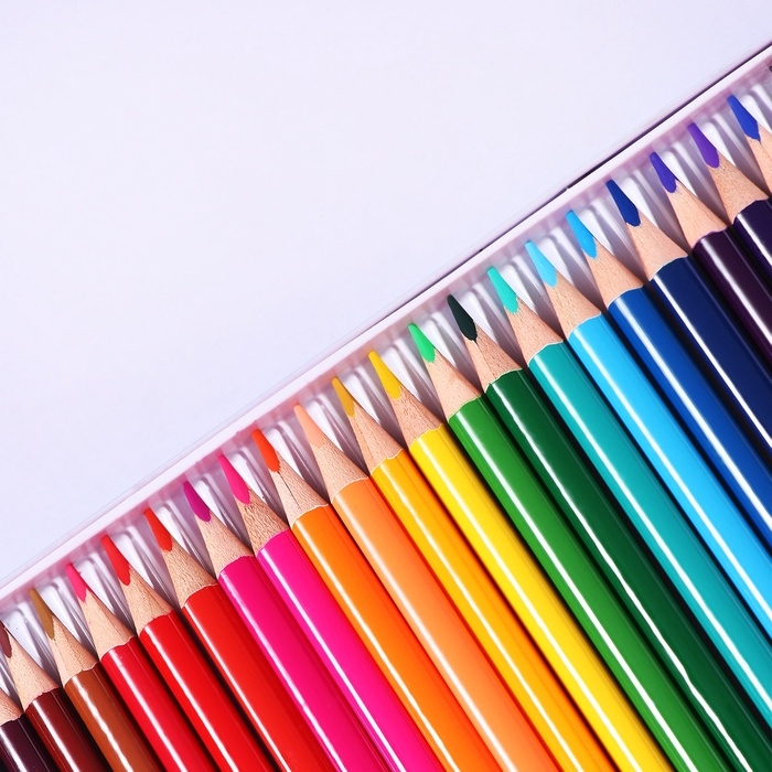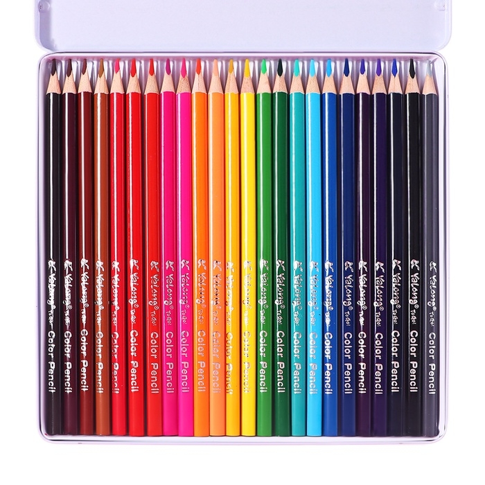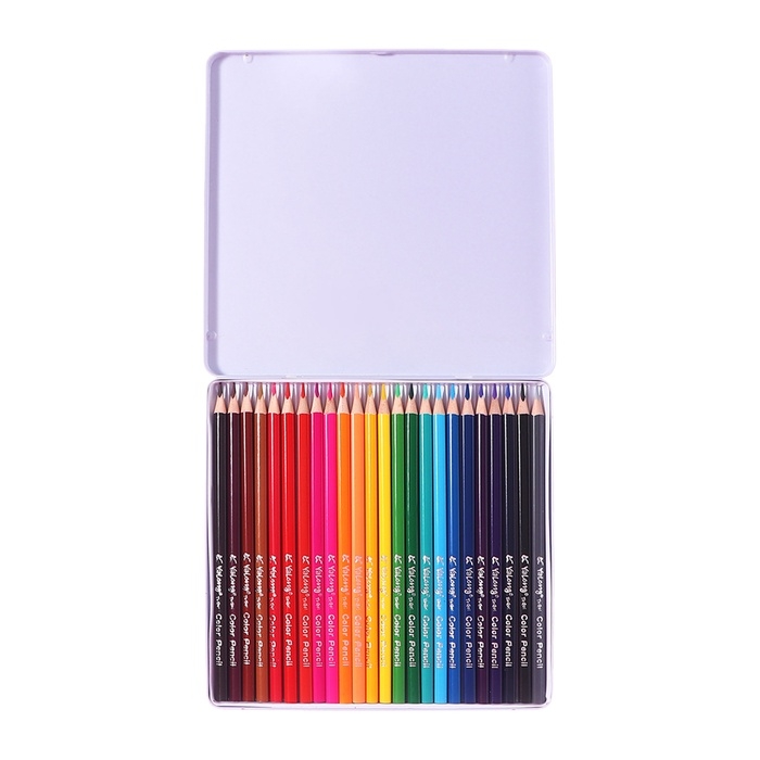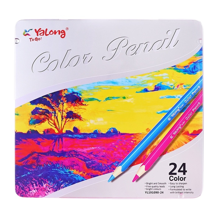 Карандаши 24 цвета, в металл пенале, треугольные, деревянные, Пейзаж МИКС