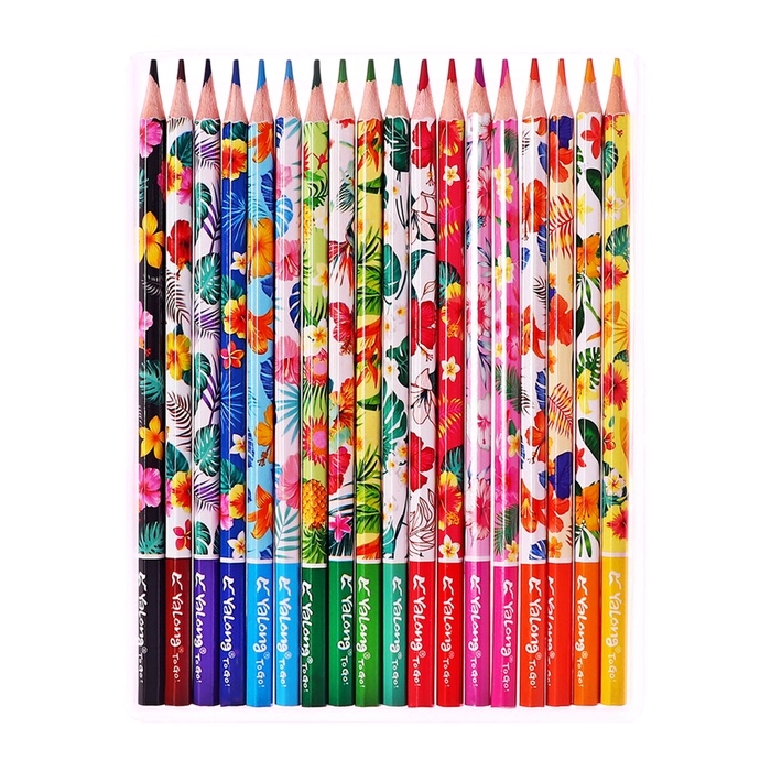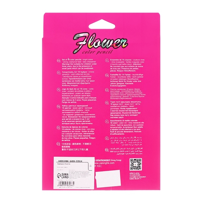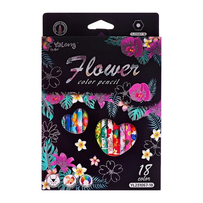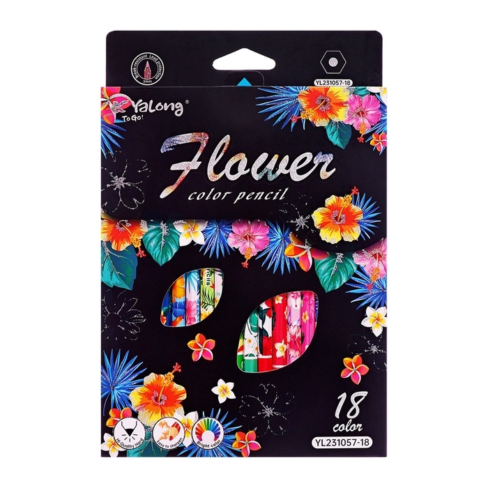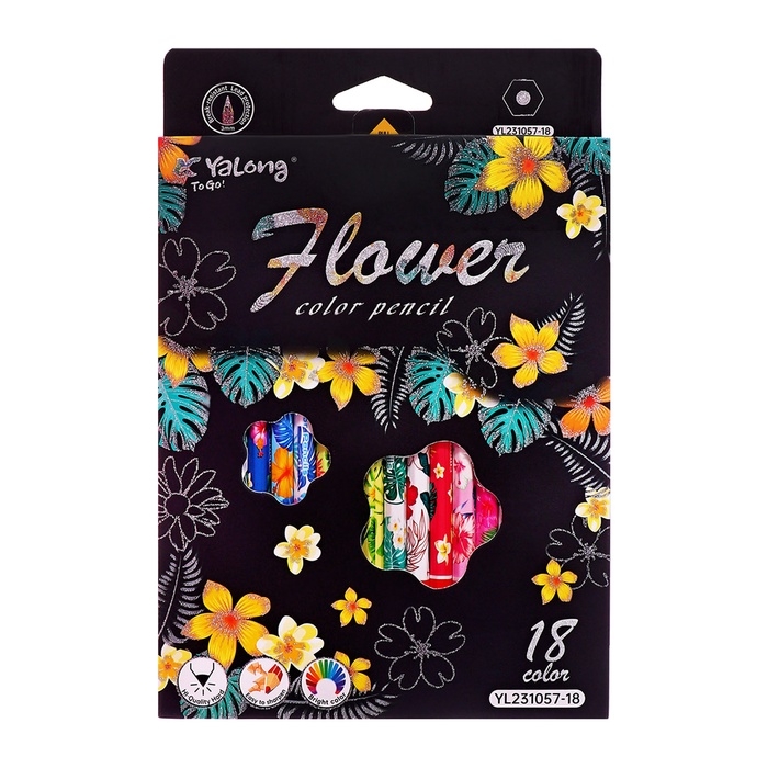 Карандаши 18 цветов в картонной коробке, шестигранные, деревянные,Цветы на чёрном МИКС
