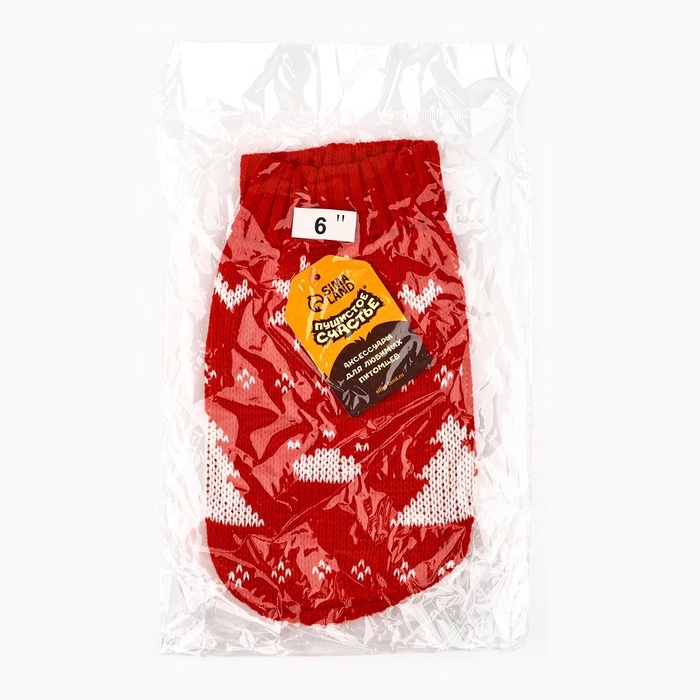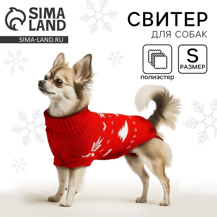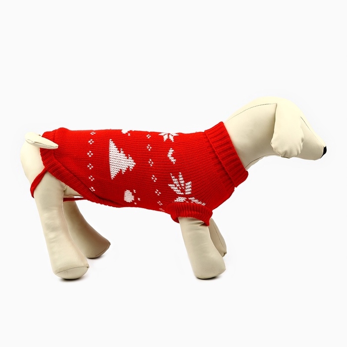 Одежда для собак. Свитер вязаный с орнаментом «Новогодний», красный, размер S