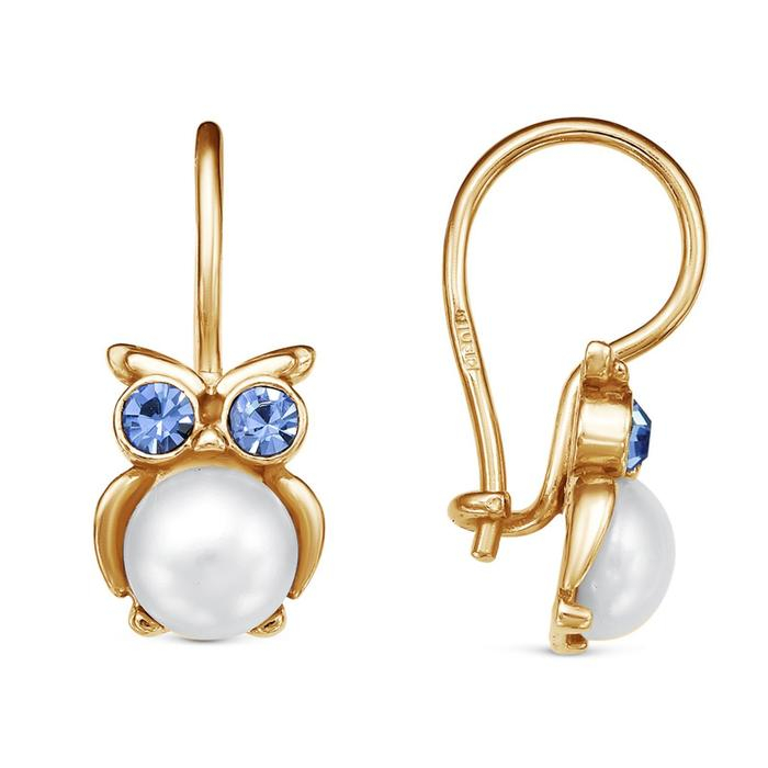 Серьги детские «Совушка», розовое золочение, цвет бело-голубой