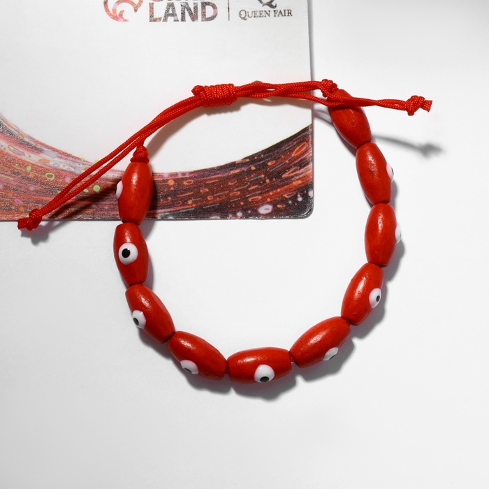 Браслет-оберег "Глазки", деревянные рисинки, цвет красный