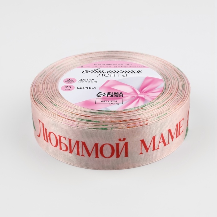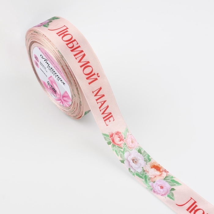 Лента атласная «Букет любимой маме», 25 мм × 23 м ± 1 м, цвет нежно-розовый