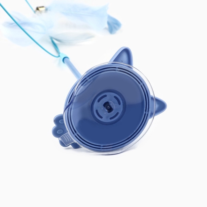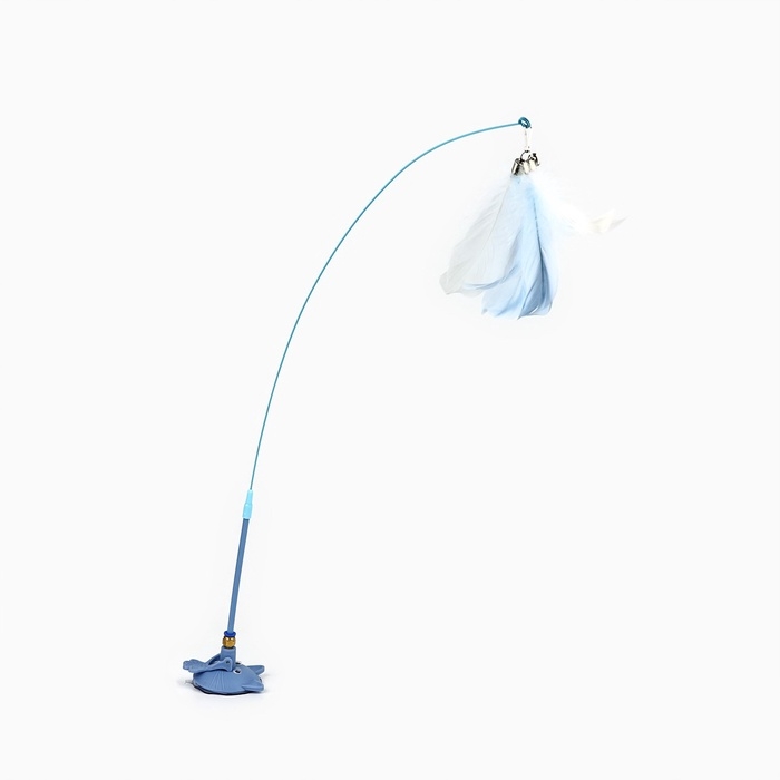 Игрушка дразнилка для кошек на присоске с пером «Котик», голубой, 94 см