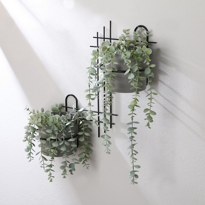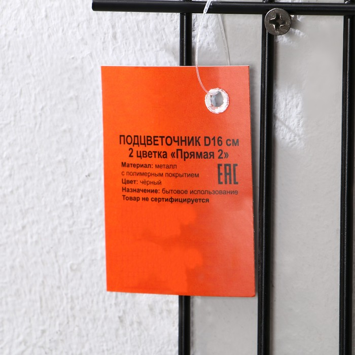 Подвес для кашпо, настенный, d = 16 см, чёрный, «Прямая-2»