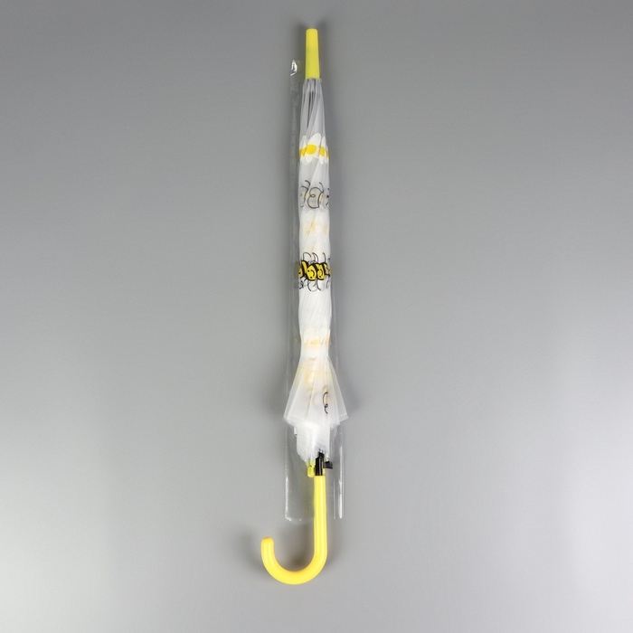 Зонт - трость полуавтоматический «Пчёлки», 8 спиц, R = 45/54 см, D = 108 см, цвет прозрачный/белый/жёлтый