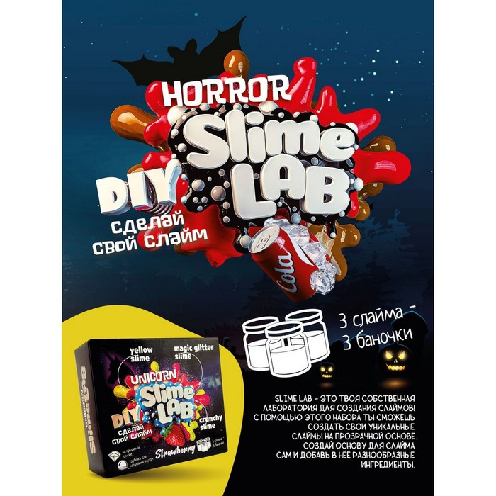 Набор для опытов и экспериментов «Хоррор. Кола айс» — это твоя собственная лаборатория для создания слаймов! С помощью целой серии наборов Slime Lab ты сможешь создать свои уникальные слаймы на прозрачной основе.