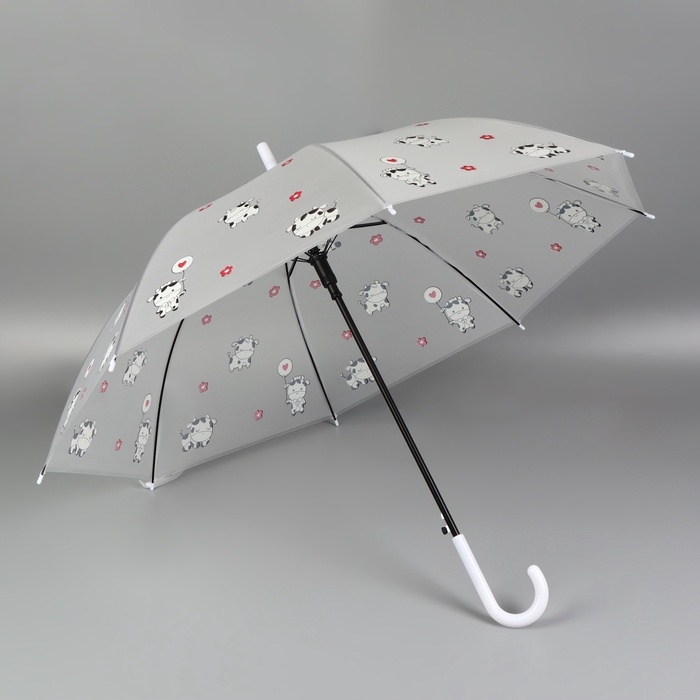 Зонт - трость полуавтоматический «Коровки», 8 спиц, R = 45/54 см, D = 108 см, цвет прозрачный/белый