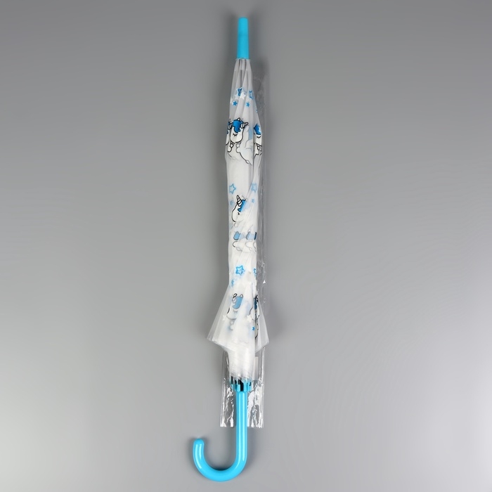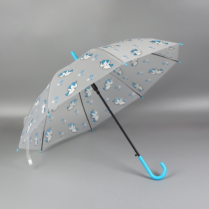 Зонт - трость полуавтоматический «Единороги», 8 спиц, R = 45/54 см, D = 108 см, цвет прозрачный/белый/голубой
