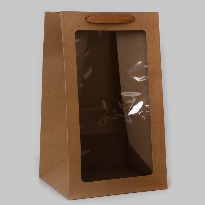 Пакет подарочный с окном, крафт, 50 х 30 х 25 см