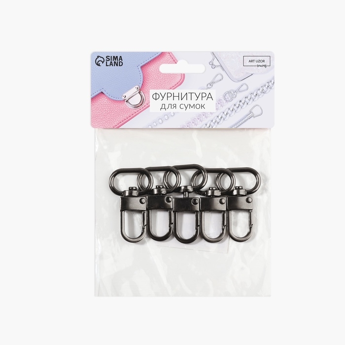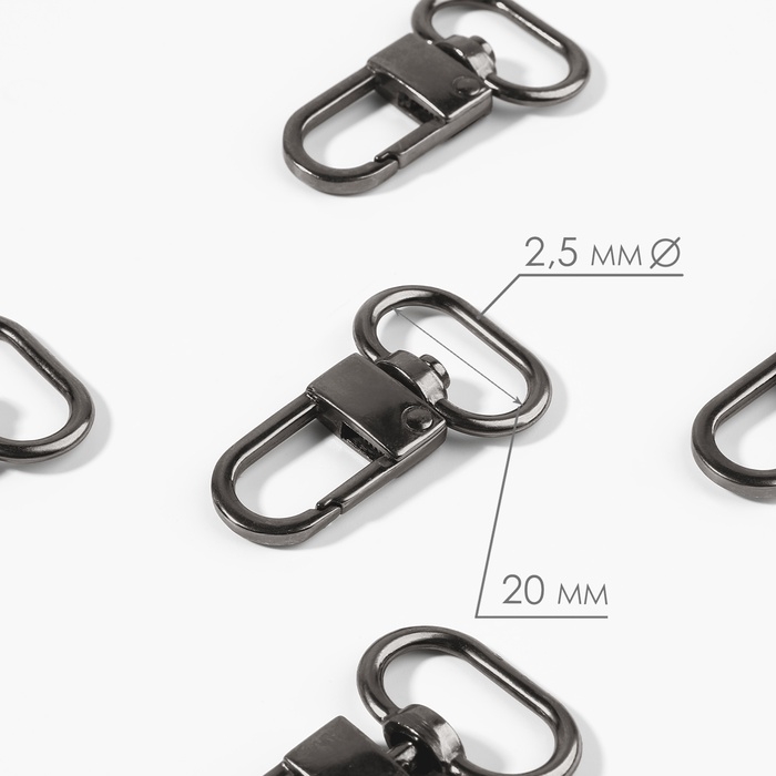 Карабин металлический, 41 × 25 мм / 20 × 2,5 мм, 5 шт, цвет чёрный никель
