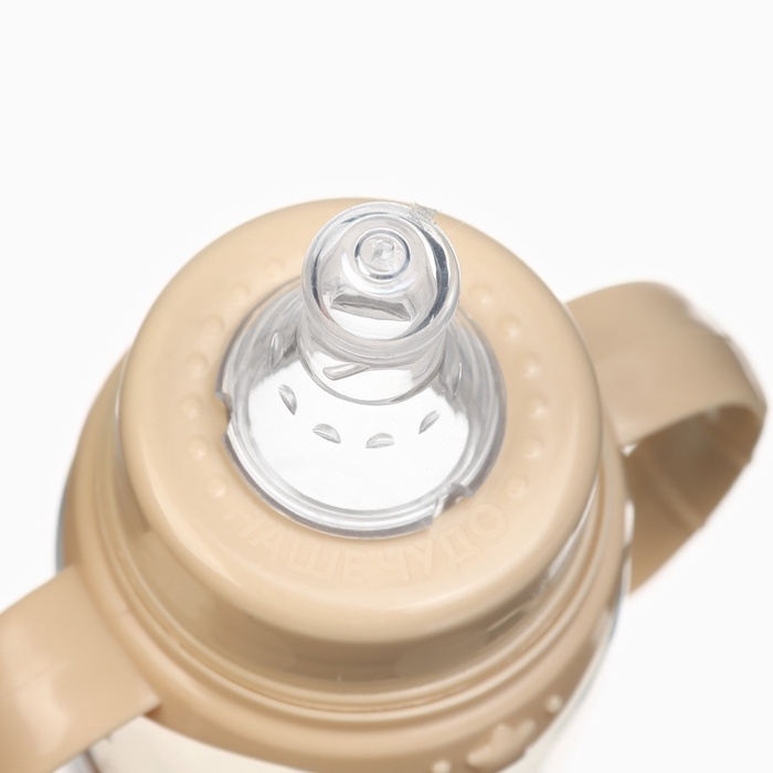 Бутылочка для кормления «Зайчик» 150 мл, цилиндр, с ручками, цвет бежевый