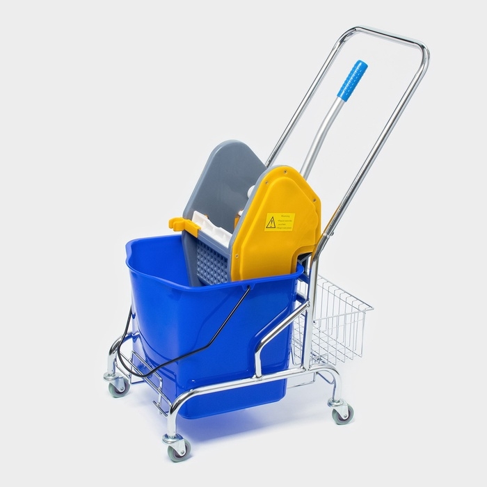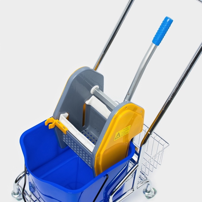 Тележка уборочная одноведерная, с отжимом, 23 л, хромированная рама