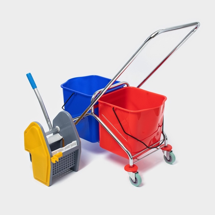 Тележка для уборки с вертикальным отжимом, два ведра по 25 литров, на колёсах, хромированная рама