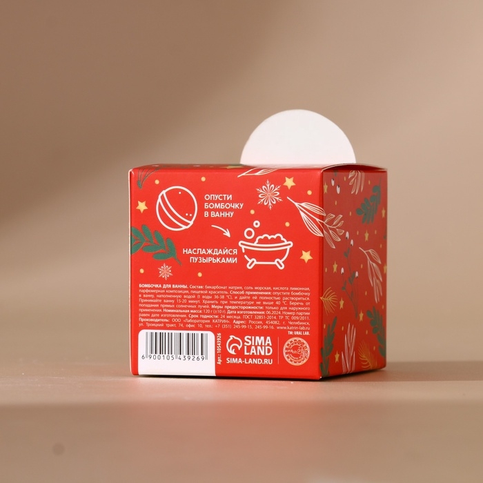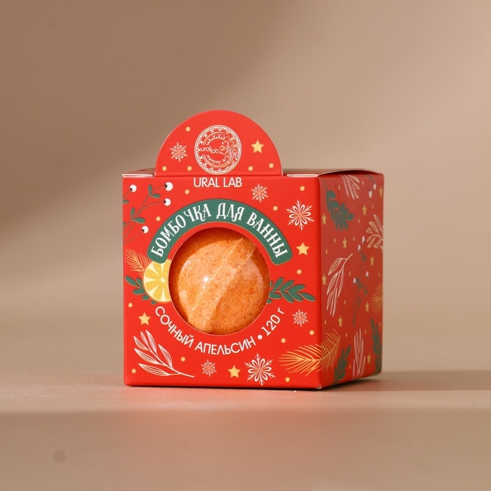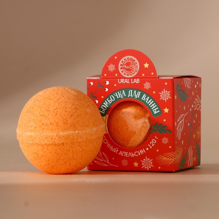 Бомбочка для ванны URAL LAB, 120 г, аромат сочного апельсина, Новый Год