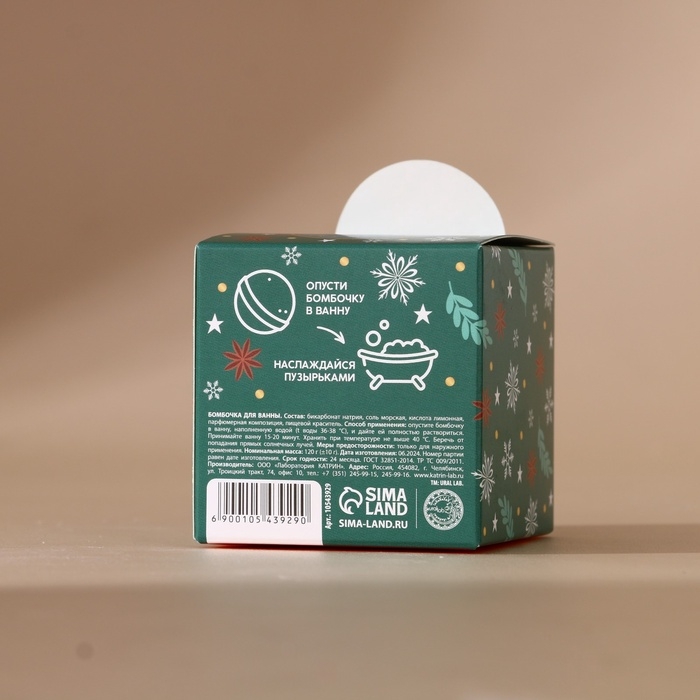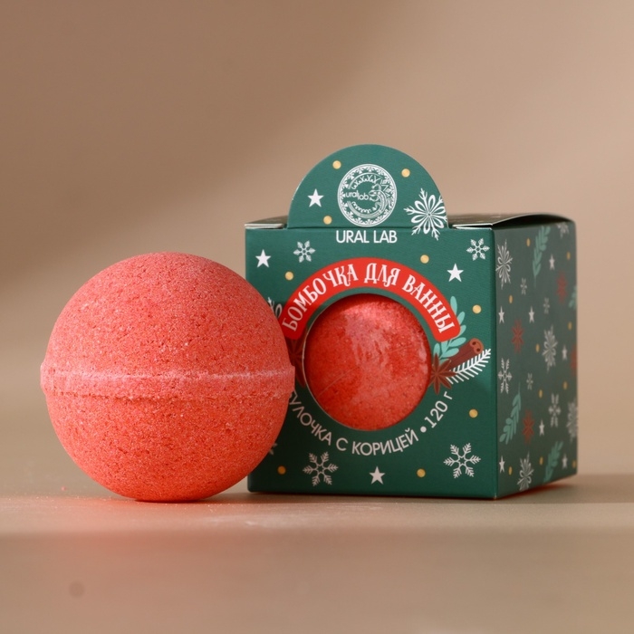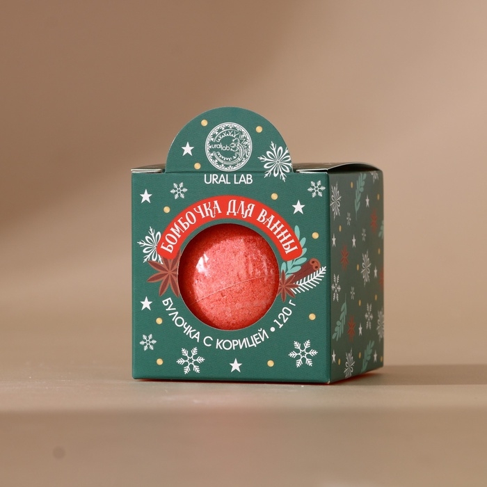 Бомбочка для ванны URAL LAB, 120 г, аромат булочки с корицей, Новый Год