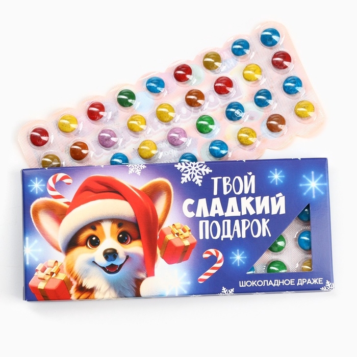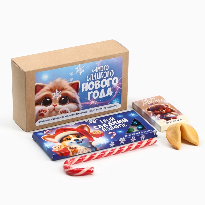 Новогодний подарок гифтбокс мини «Самого сладкого 2025»: драже, печенье, леденец, шоколад