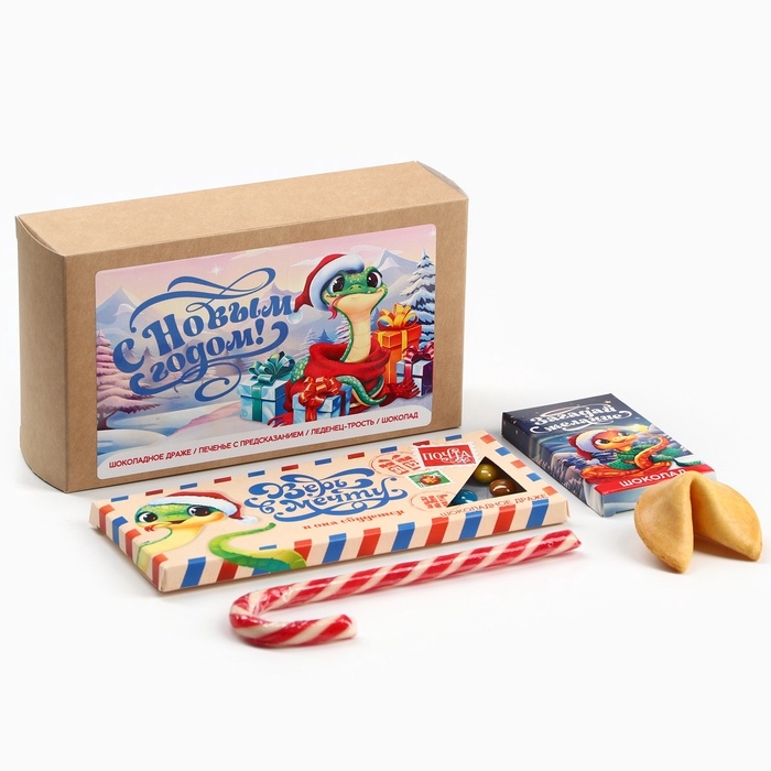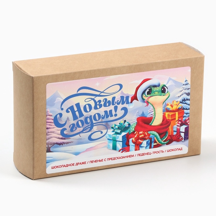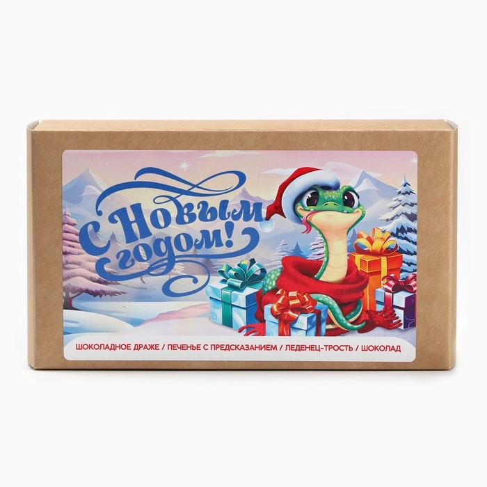 Новогодний подарок гифтбокс мини «Змея 2025»: драже, печенье, леденец, шоколад