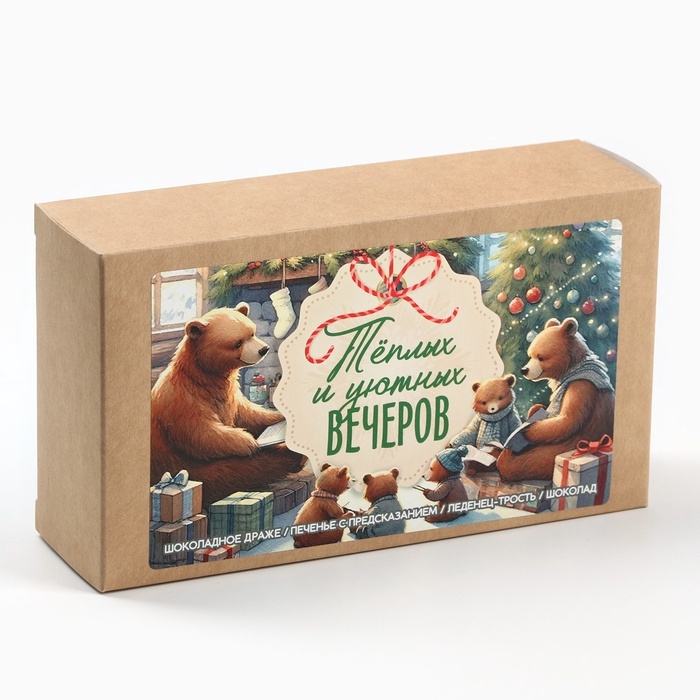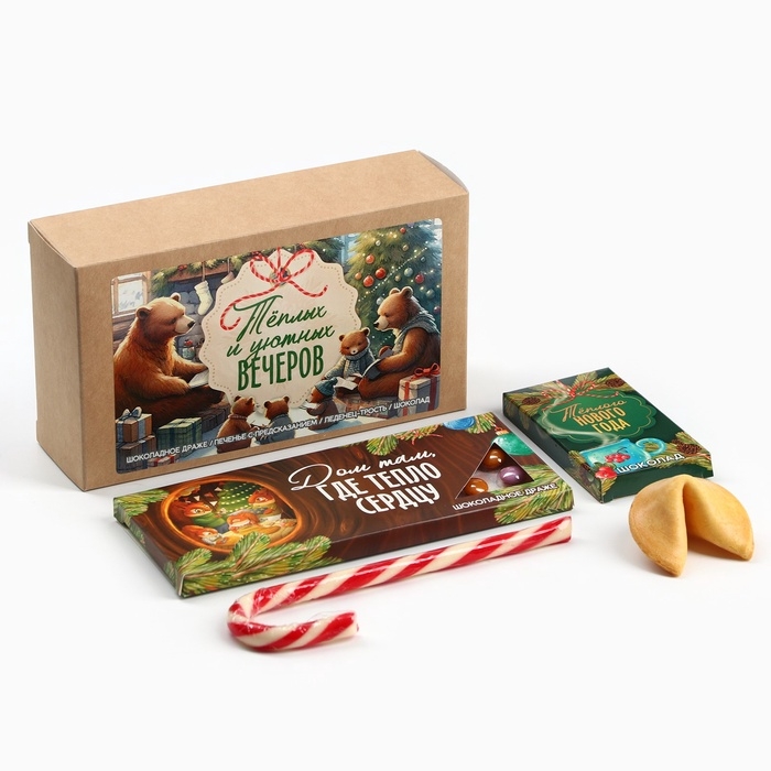 Новогодний подарок гифтбокс мини «Тёплых вечеров»: драже, печенье, леденец, шоколад