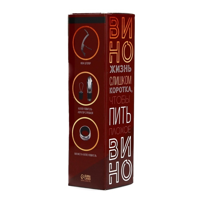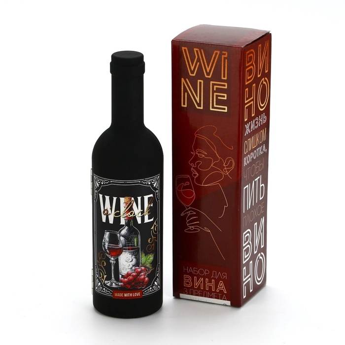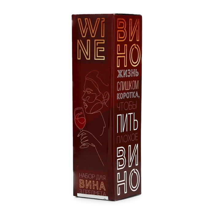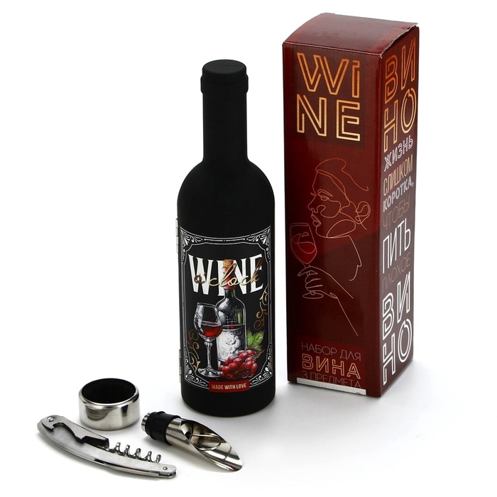 Подарочный набор для вина мини: аэратор, штопор, каплеуловитель для бутылки вина «Wine», 20 х 10 см