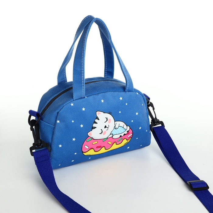 Сумка детская для девочки на молнии, регулируемый ремень, цвет синий