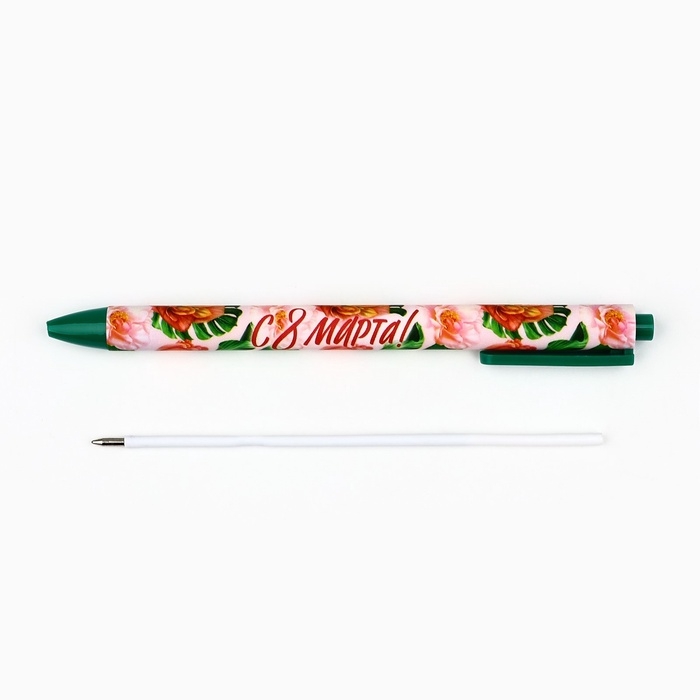 Ручка шариковая, синяя паста, 0.7 мм, автоматическая, матовая «С 8 марта»