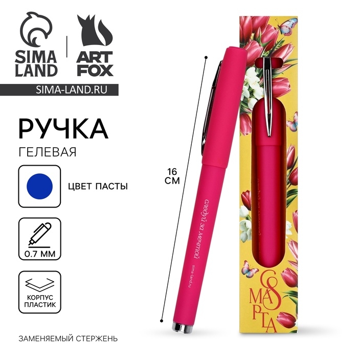 Ручка гелевая, синяя паста, 0.7 мм, пластик «С 8 марта»