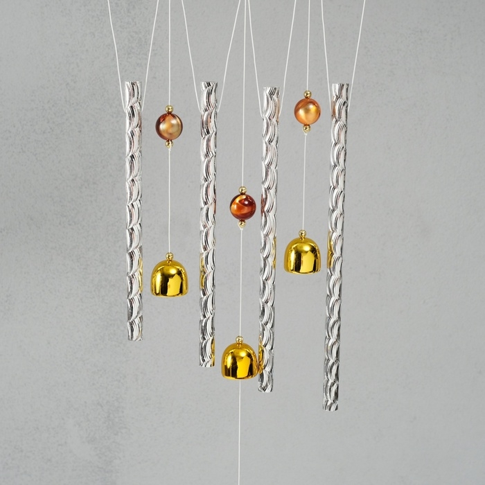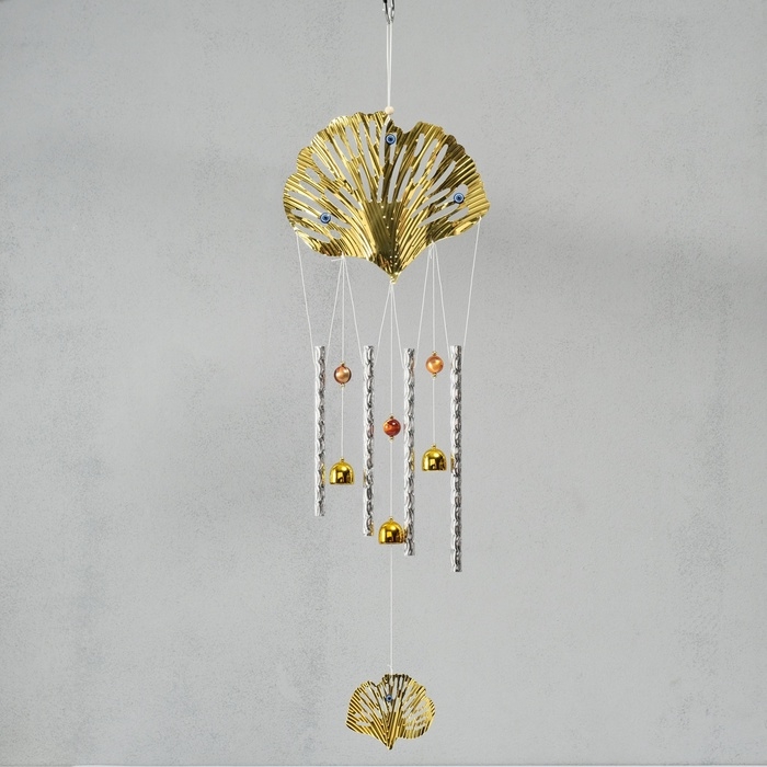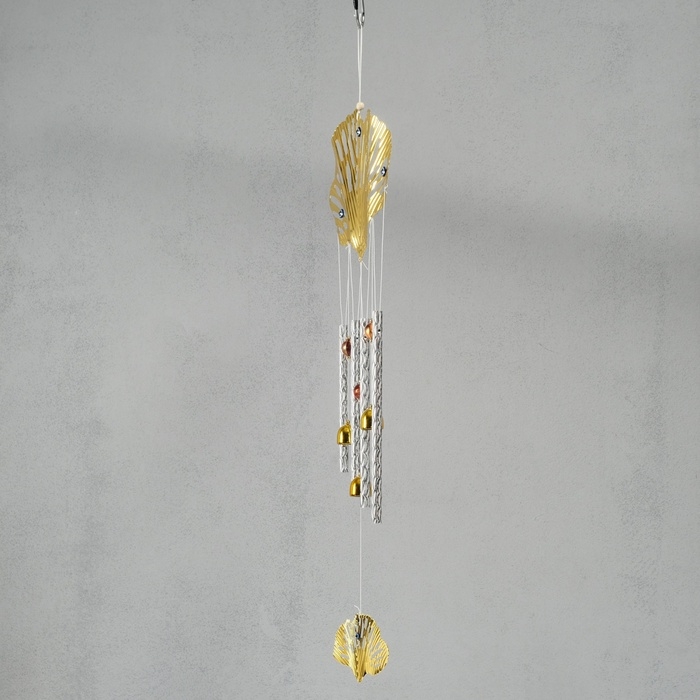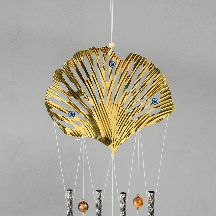 Музыка ветра от сглаза металл "Лист Назар" 4 трубки и 3 колокольчика 2,5х23,5х67 см