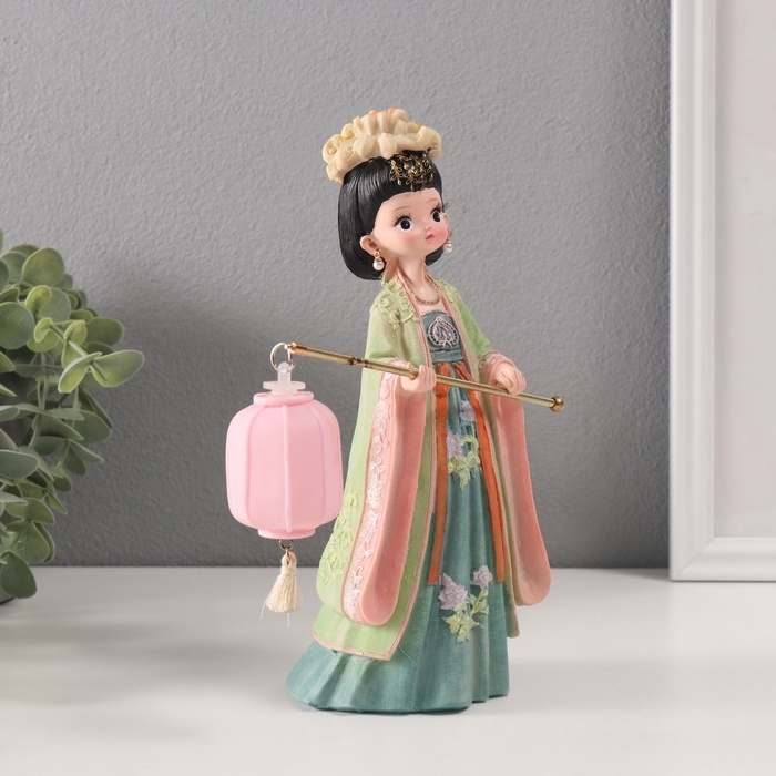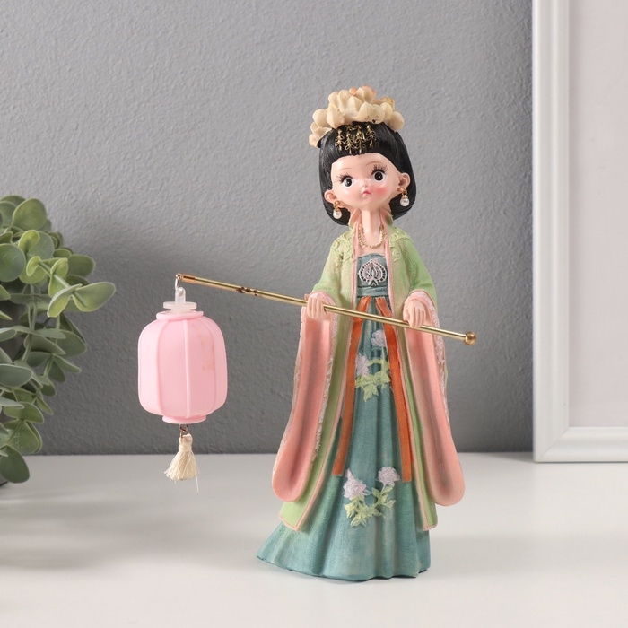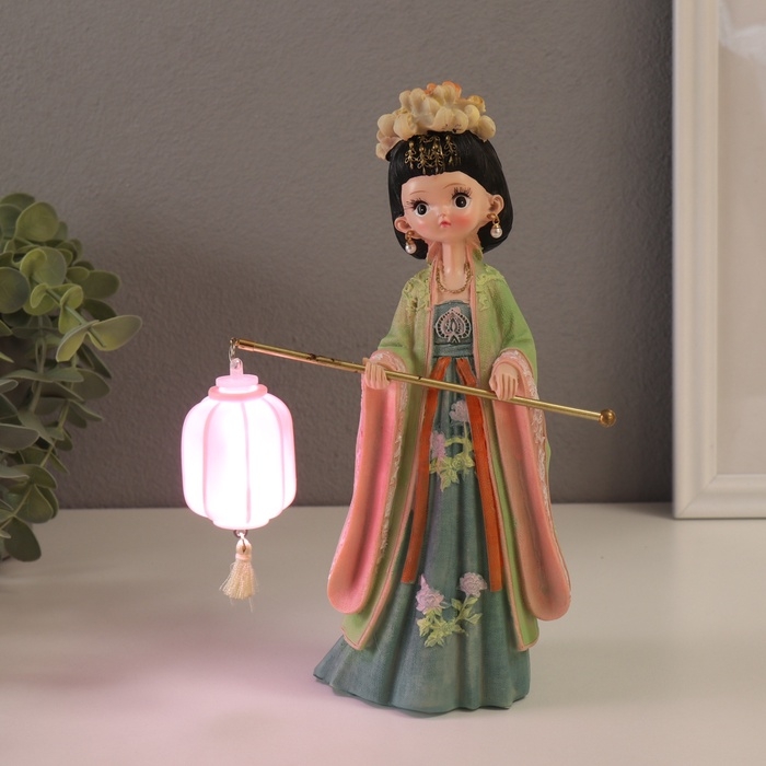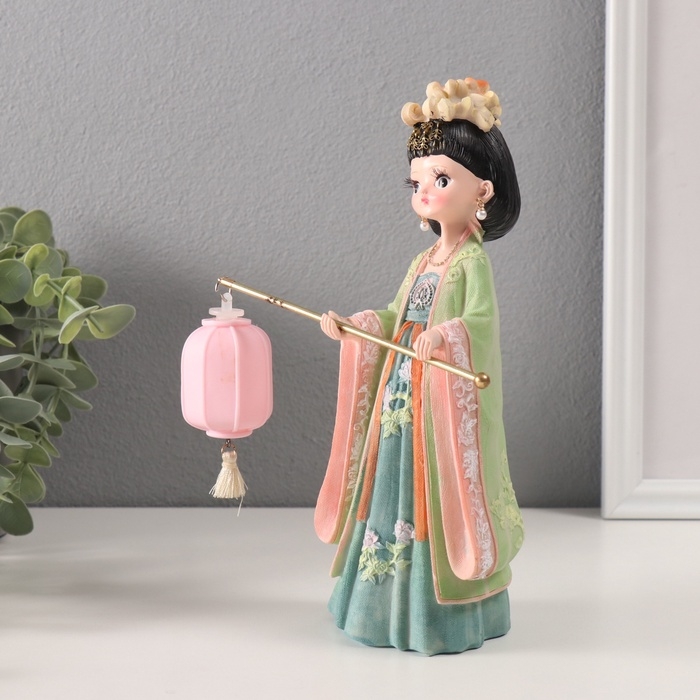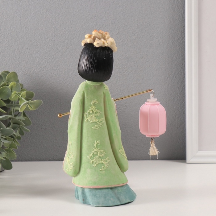 Сувенир полистоун свет "Девочка в кимоно с фонариком" зеленый 1хLR41 7,6х14х22 см