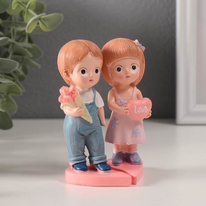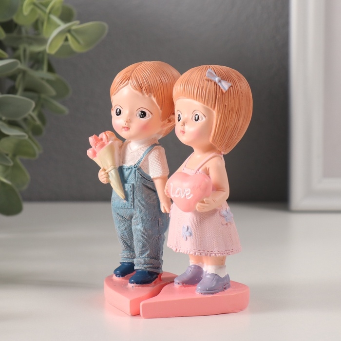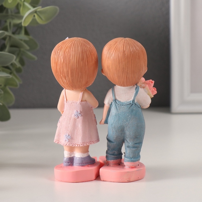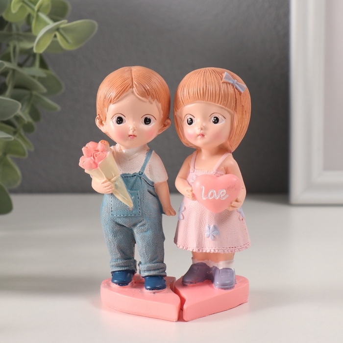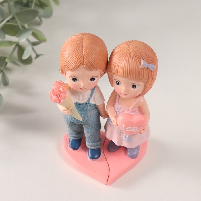 Сувенир полистоун "Парочка с сердцем и с букетом" набор 2 шт 7х6,5х11 см