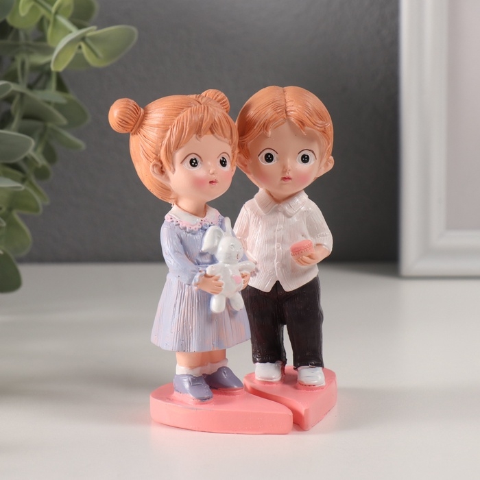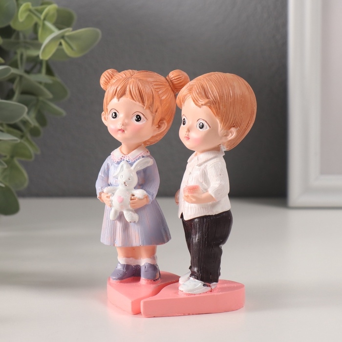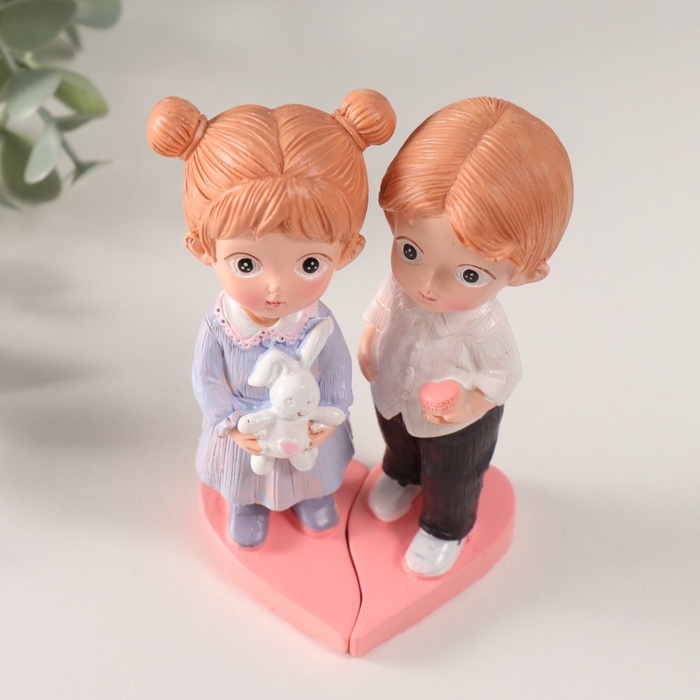 Сувенир полистоун "Парочка с зайком и шкатулкой" набор 2 шт 5,5х6,5х11 см