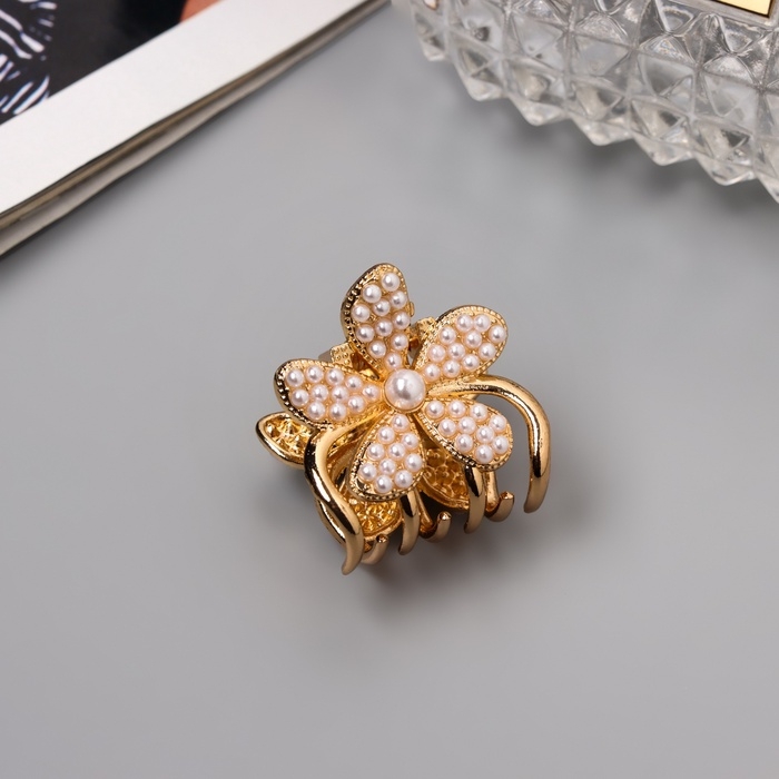 Краб для волос "Лилиан" цветок стиль, 2.5 см, золото