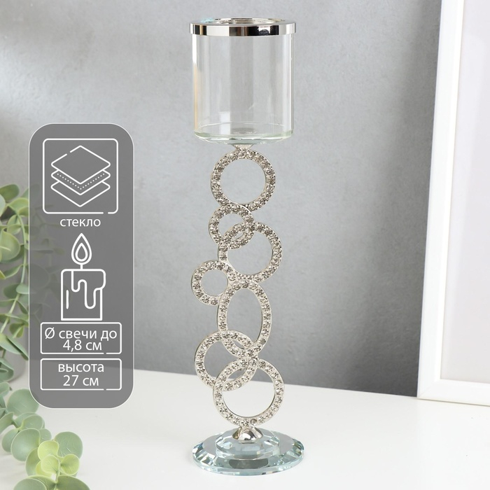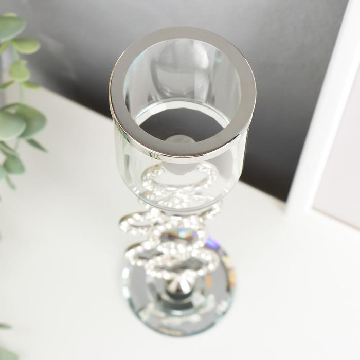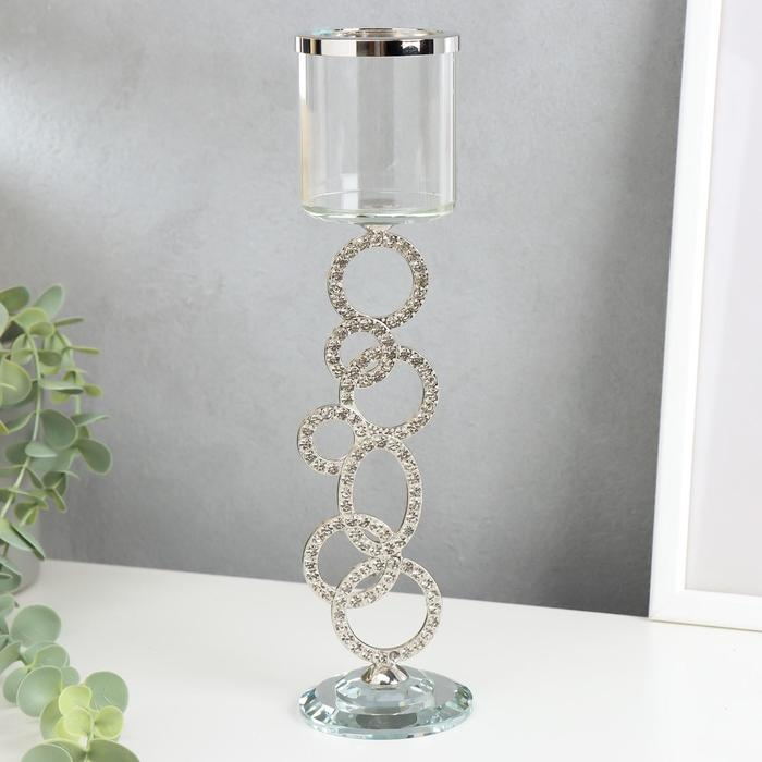 Подсвечник стекло на 1 свечу "Сплетение колец" стразы серебро 27х7х7 см