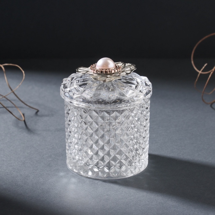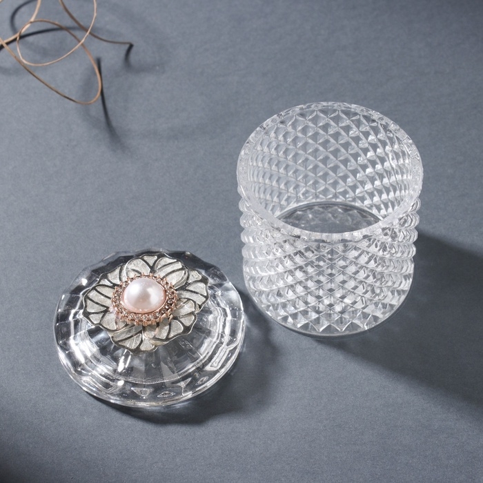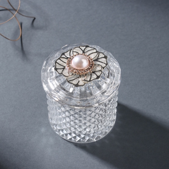 Шкатулка стекло "Цветок с сеточкой" серебро 6х6х8 см