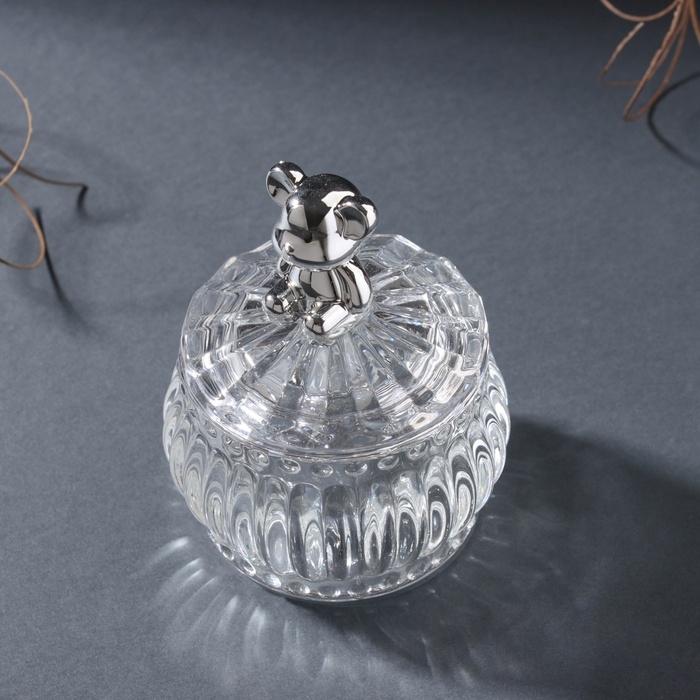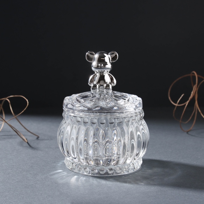 Шкатулка стекло "Мишка" серебро 8х8х10 см
