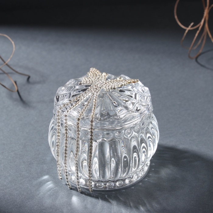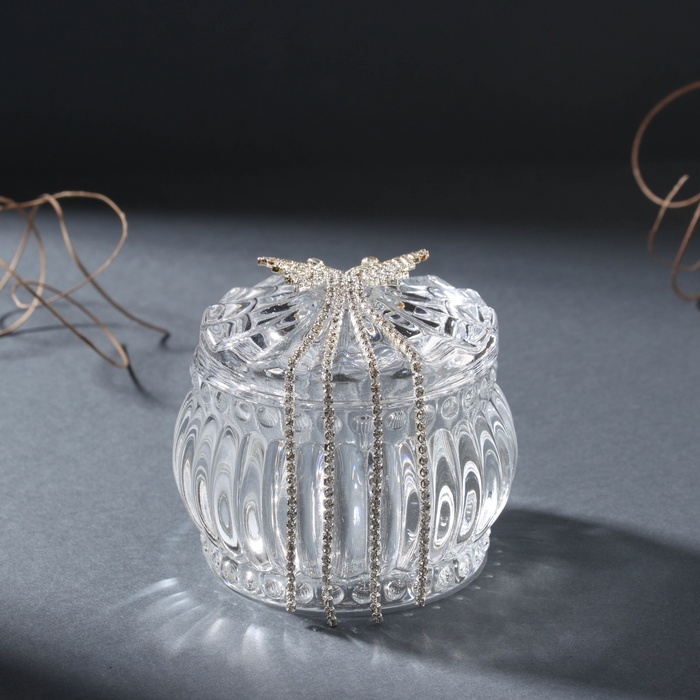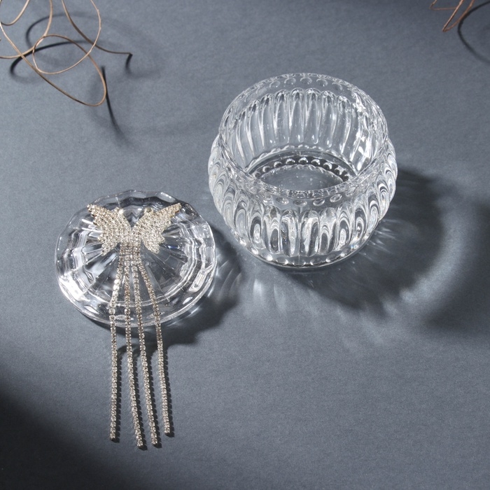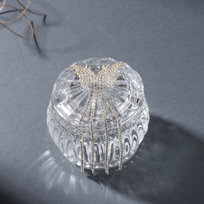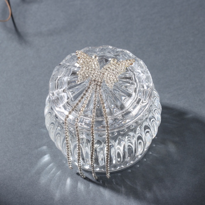 Шкатулка стекло "Бабочка со шлейфом" серебро 7,5х7,5х7 см