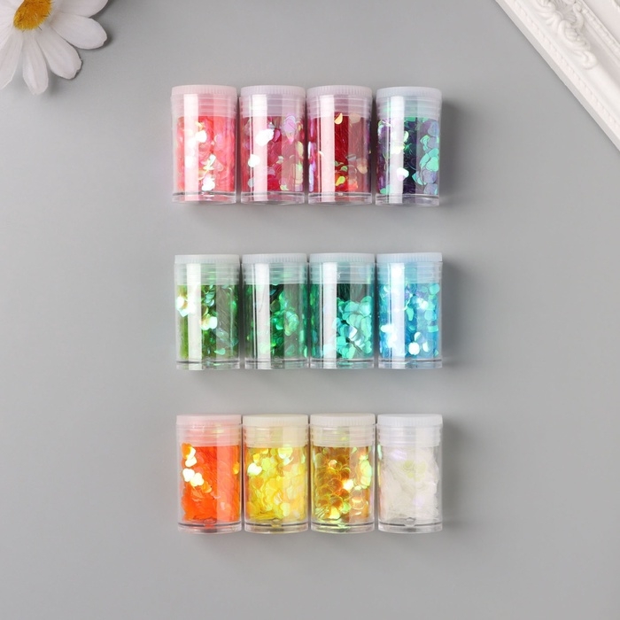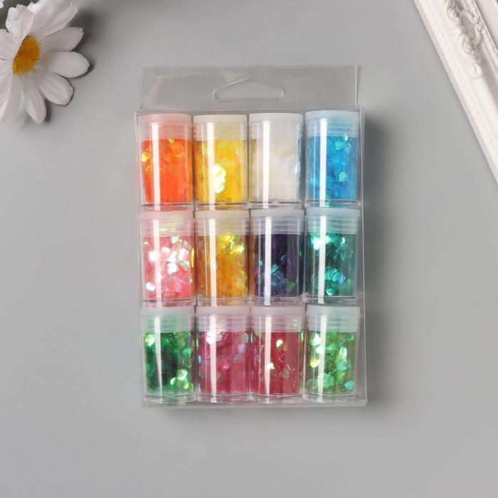 Декор для творчества в банке "Неоновые сердца" набор 12 шт 13,4х8,8х3 см