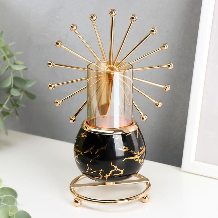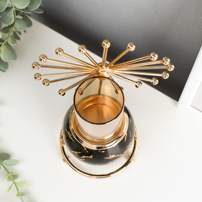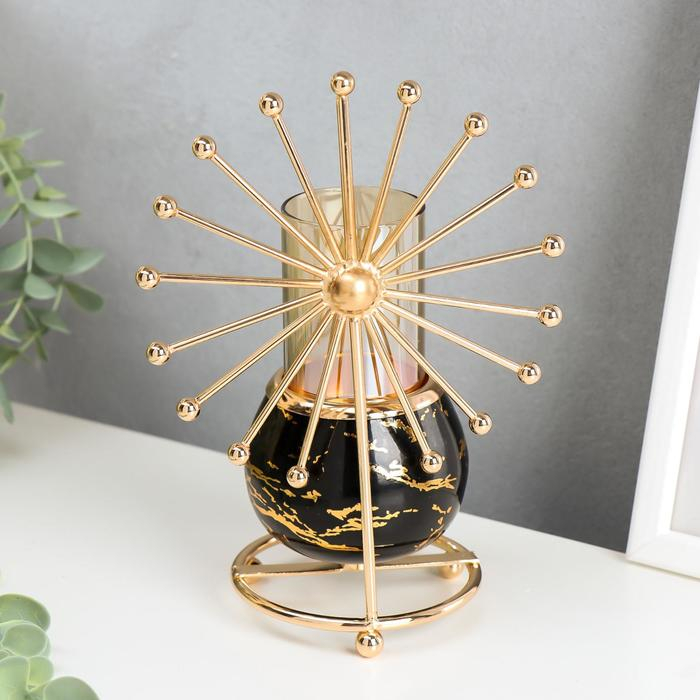 Подсвечник металл на 1 свечу "Колесо обозрения" золото на чёрном мраморе 20х14х9 см