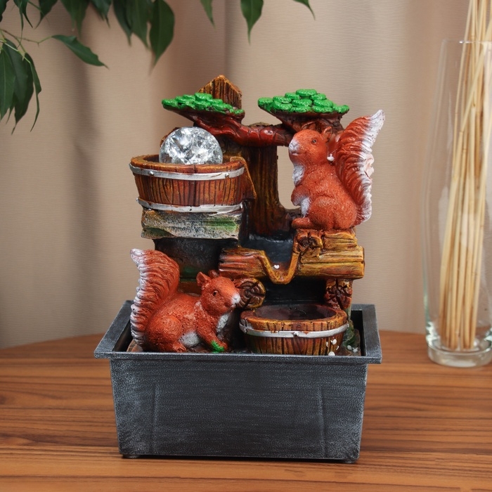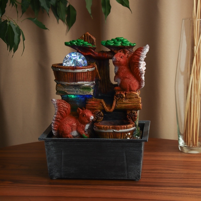Фонтан "Белочки у бочек" 28х21 см (с подсветкой)