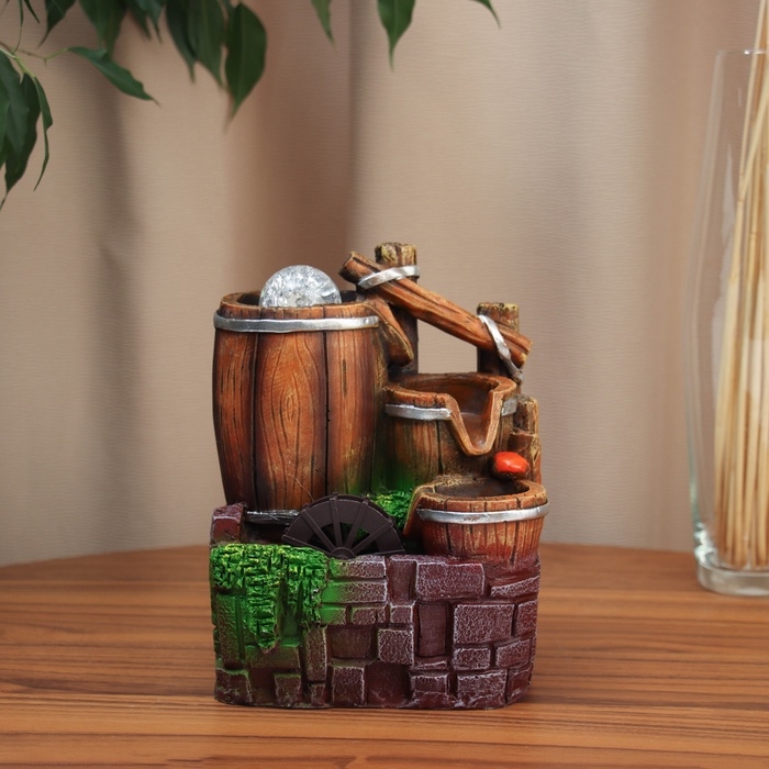 Фонтан "Бочки за каменной стеной" 20х16 см (с подсветкой)